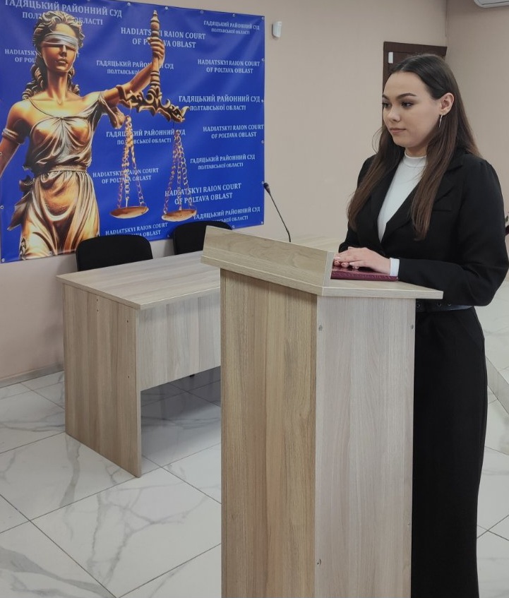 16 березня 2026 року в Гадяцькому районному суді Полтавської області відповідно до вимог Закону України «Про державну службу» публічно та урочисто, у присутності колективу суду, склала Присягу державного службовця ЛОПУШНЯК Іванна Андріївна, судовий розпорядник, яка призначена на посаду державної служби вперше.
